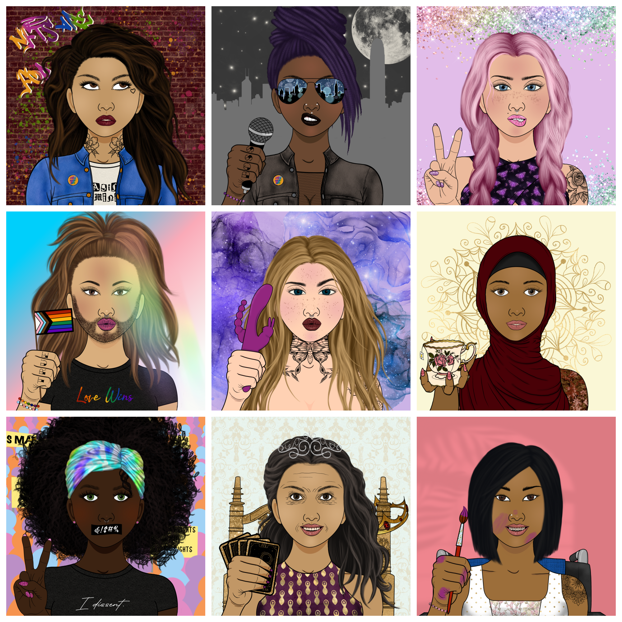 NFTs are for Girls is the most inclusive female & LGBTQIA+ led PFP project, with over 900 traits to provide individuality and personality that everyone can find themselves in. After mint, the discord will become token gated, and being a holder of this project will get you access to a safe, inclusive space where our aim is to help you grow within web3 (whether that's making friends, learning, discussing projects, finding a job, discussing alpha, or anything else web3 related).